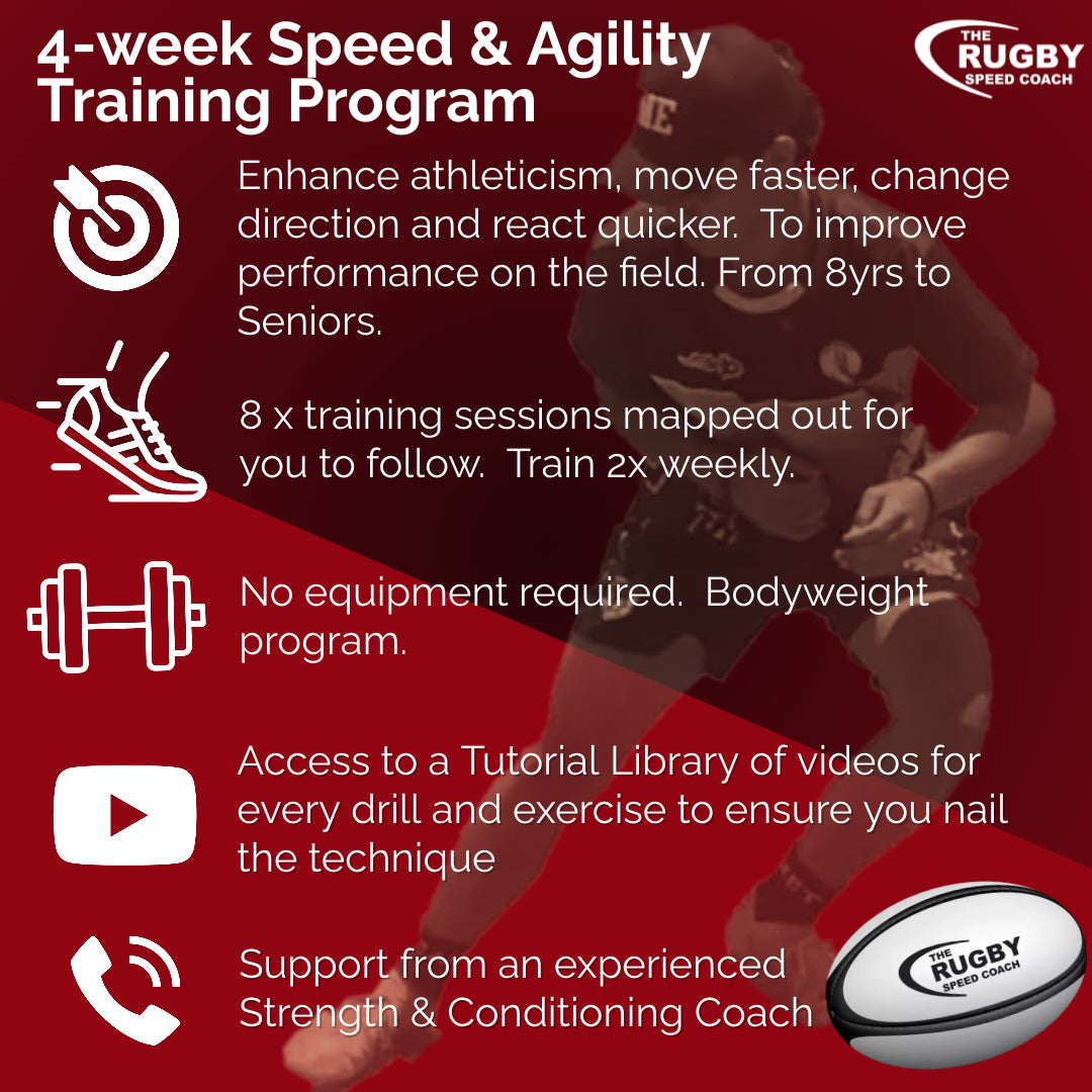 Designed by an experienced Strength & Conditioning Coach within the rugby industry. Improve your speed and agility and improve your on-field performance.